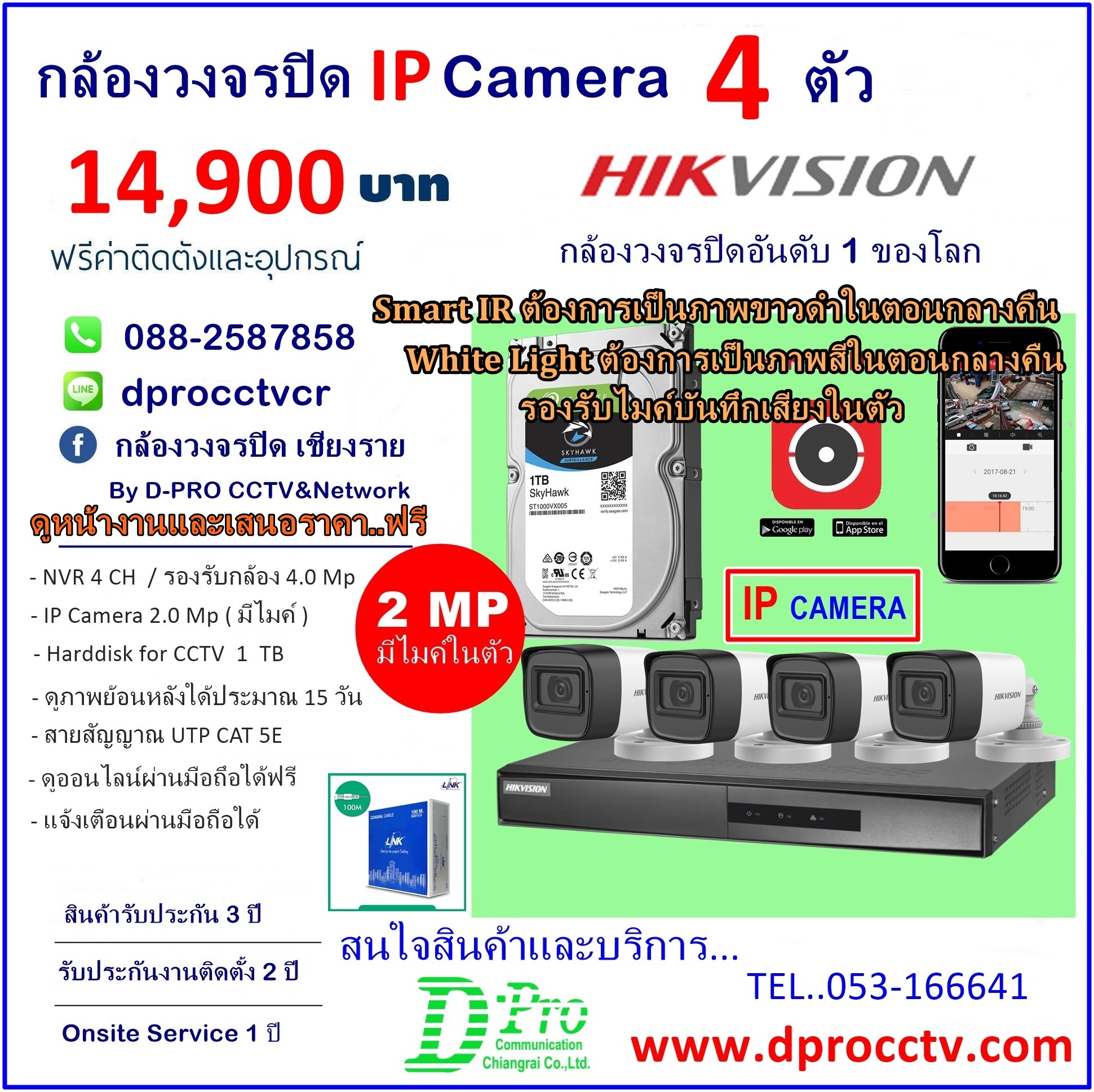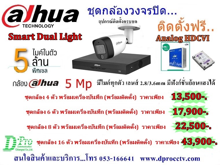 ชุดตั้งตั้งกล้องวงจรปิด HDCVI - 5.0 Mp- Dahua - เครื่องบันทึกภาพ DVR 4,8,16CH - ฮาร์ดดิส, IR Camera 5.0 Mp /Mic - สายสัญญาณภาพ RG6 + AC (100 เมตร/ 1 ม้วน ) - อุปกรณ์ในการติดตั้งระบบกล้องวงจรปิดพร้อมใช้งาน จำนวน 1 ชุด ............................................................... หมายเหตุ - ราคานี