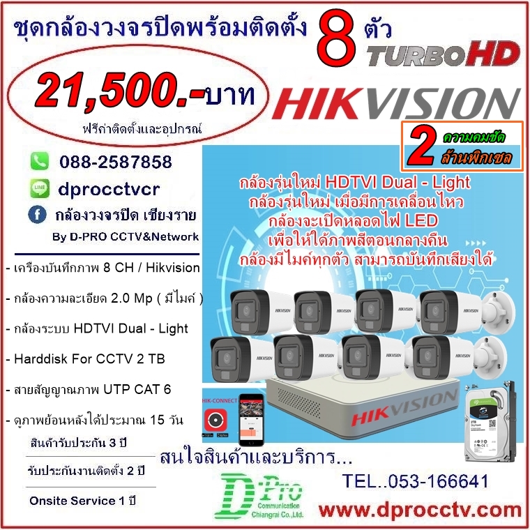 ชุดกล้องวงจรปิดพร้อมติดตั้ง HDCVI, 5.0Mp (มีไมค์) - Dahua
