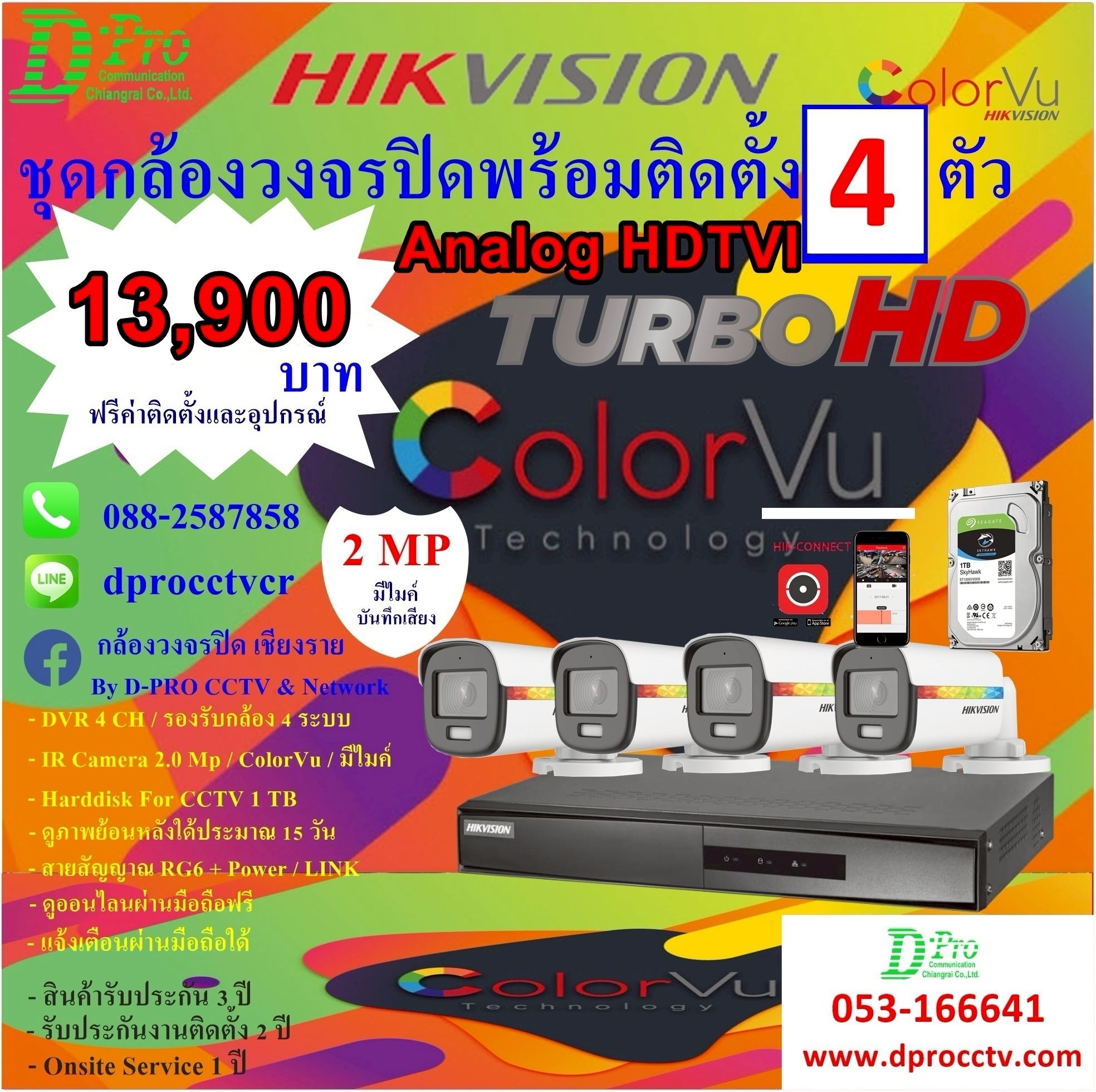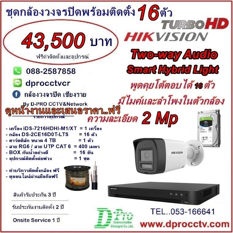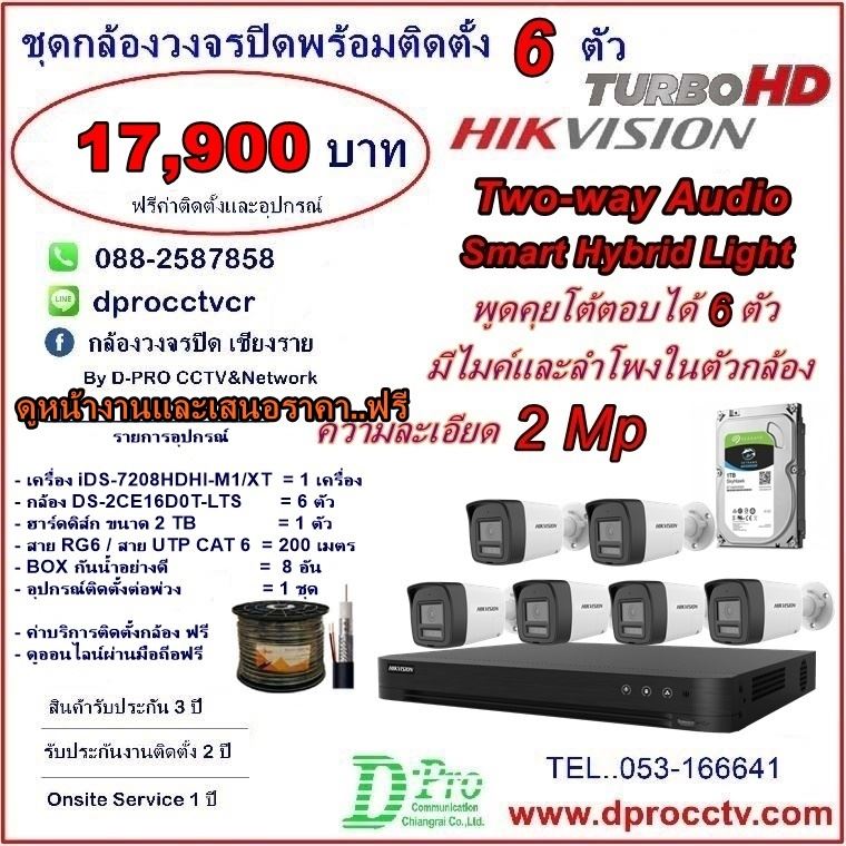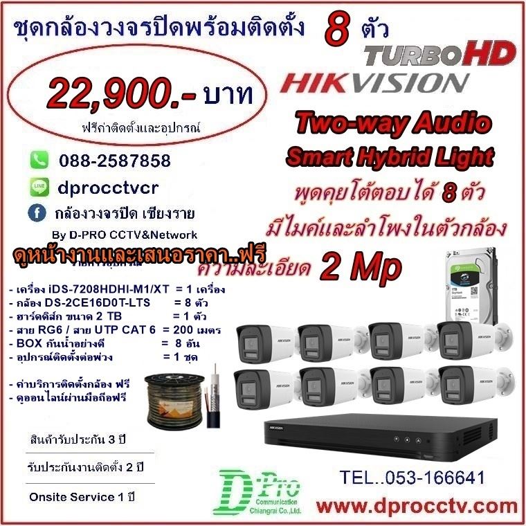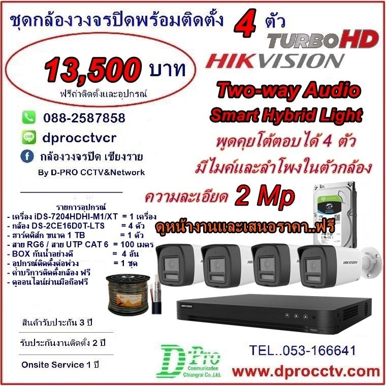 ชุดกล้องวงจรปิดพร้อมติดตั้ง HDCVI 2.0Mp( มีไมค์, ภาพสี 24 ชั่งโมง ) - Dahua